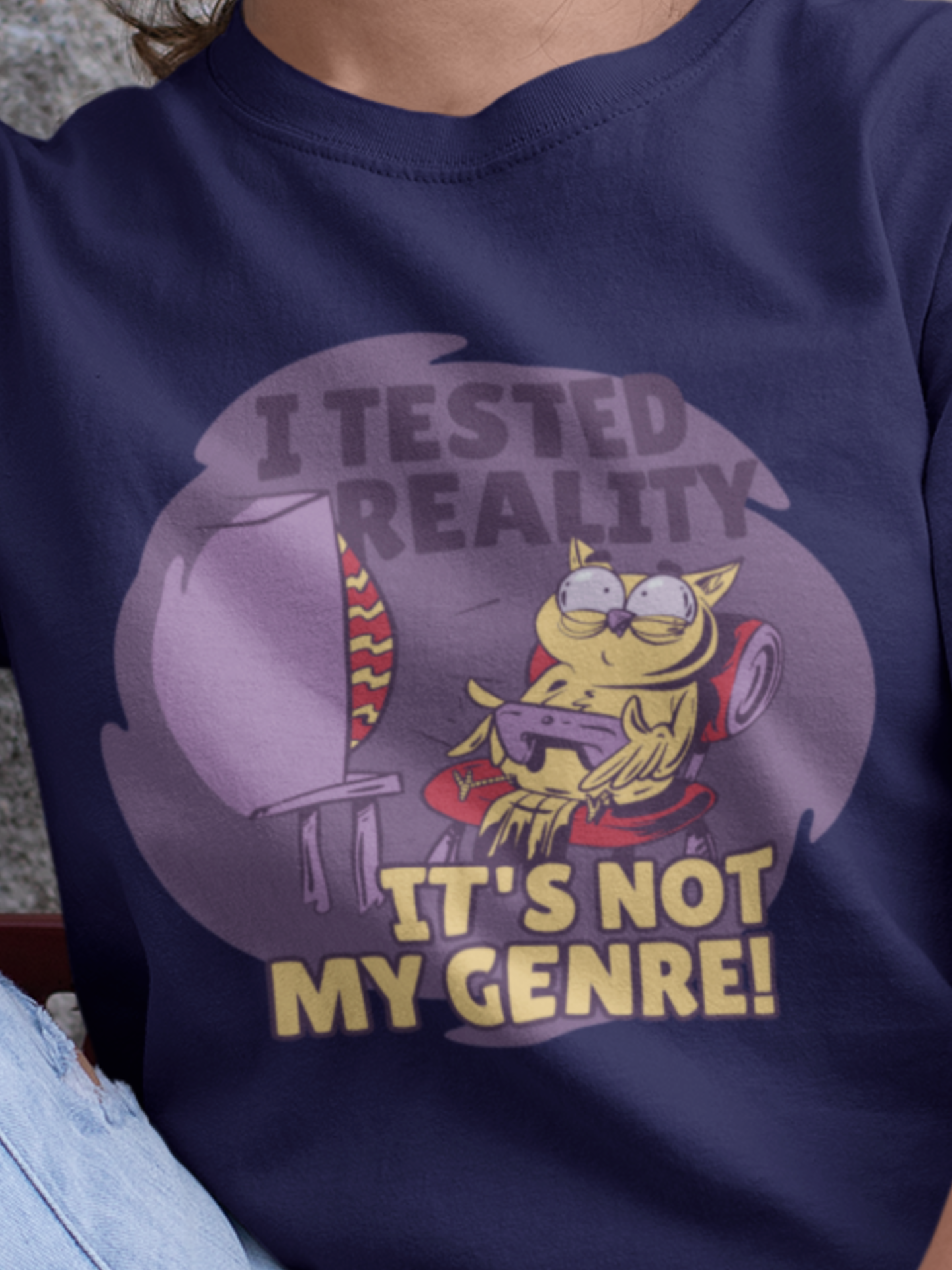With a T shirt graphic design quote about Tested Reality.